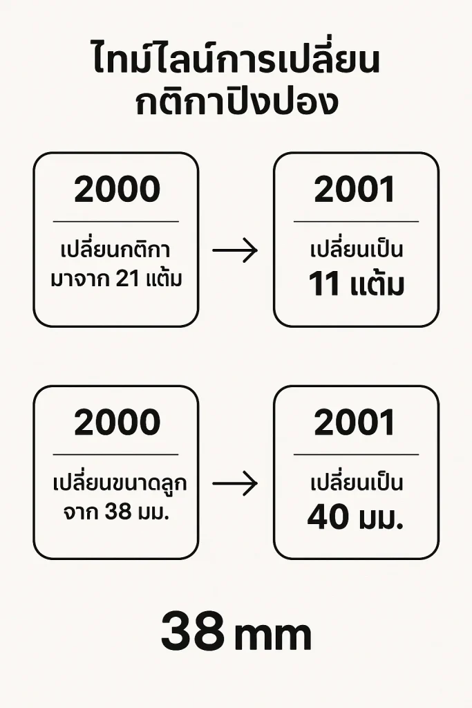 ปี 2000: จุดเปลี่ยนลูกปิงปองจาก 38 มม. → 40 มม.
